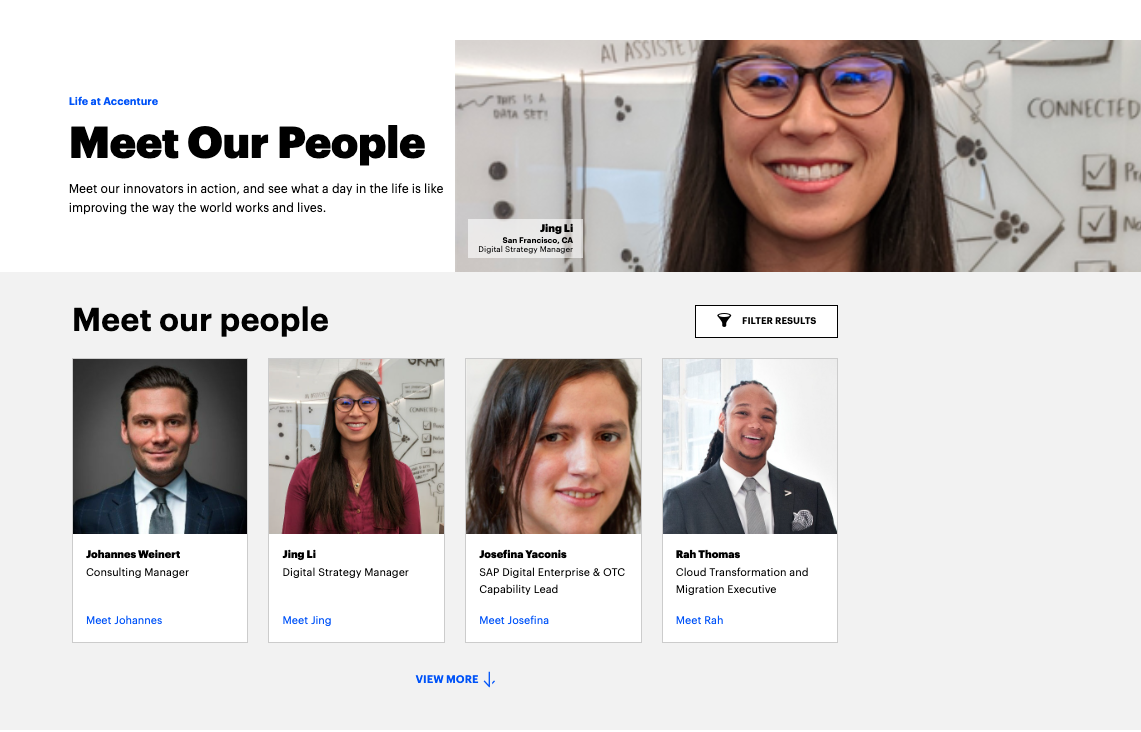 Additional projects and duties: Writing (including ghostwriting) and editing content for the Accenture Careers home page, Meet the Team pages and various other internal and external sites. Also create social media teasers and create copy for email marketing campaigns, as well as writing and editing content for various internal and external sites.